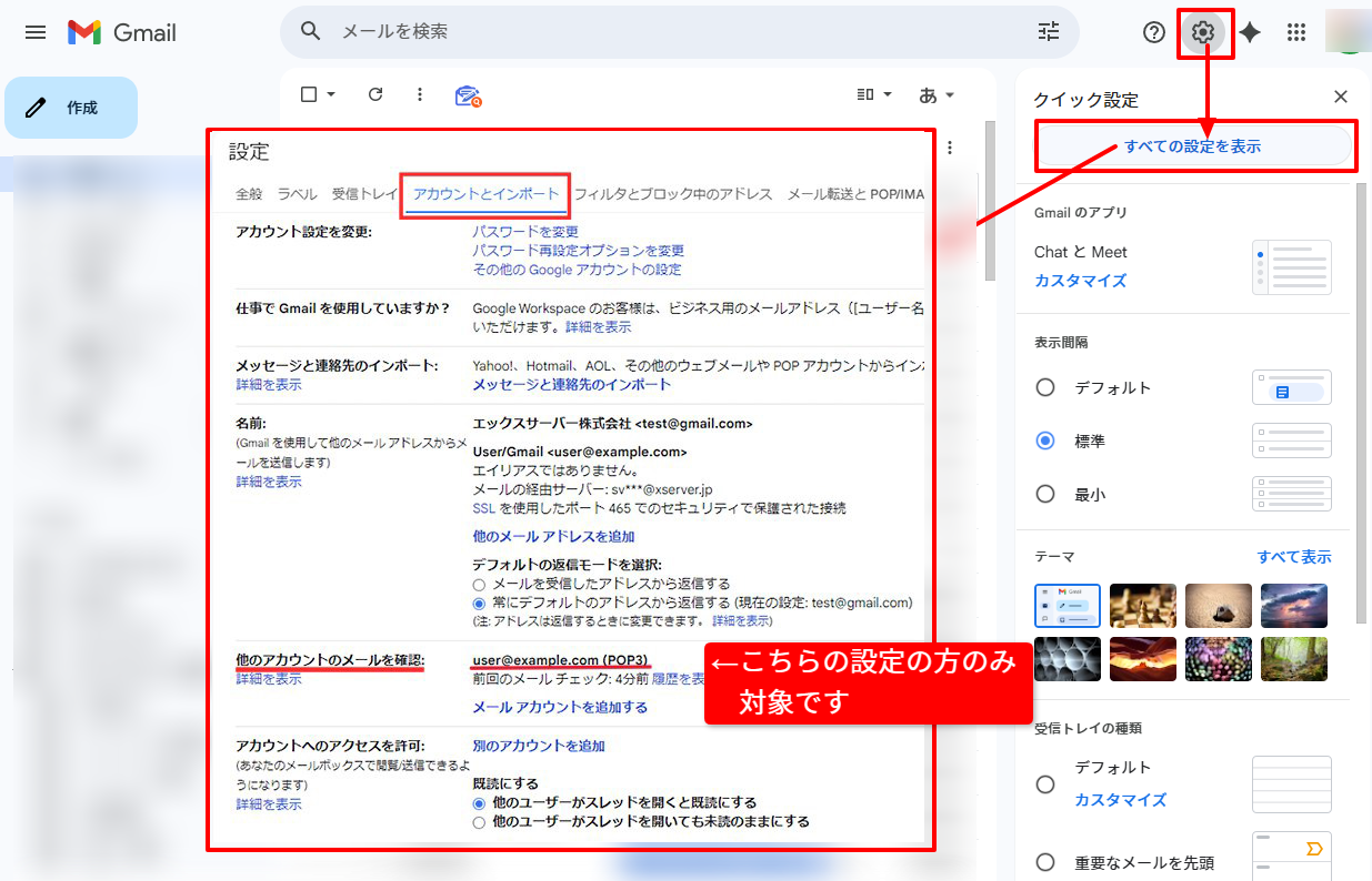 ・Gmailで、会社のメールアドレス(独自ドメインメール)を受信している