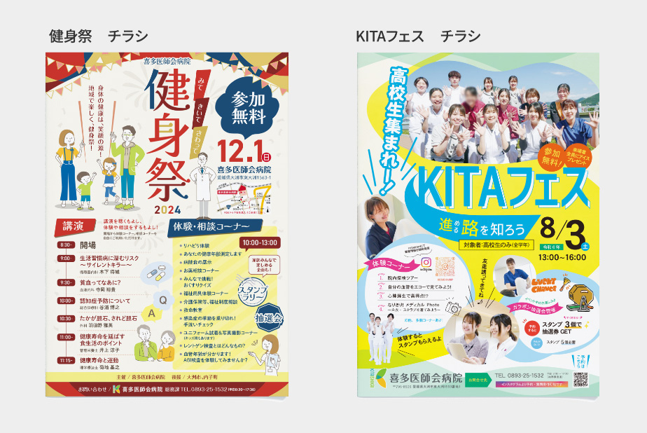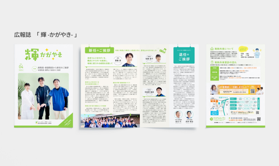 オープンデザインさんにお願いして病院案内パンフレットと、リクルートの横長いパンフレットも作って頂いて、それはもう今までは田舎の病院なりのものしかなかったのが、胸をはって見せれるものを作ってもらえました。