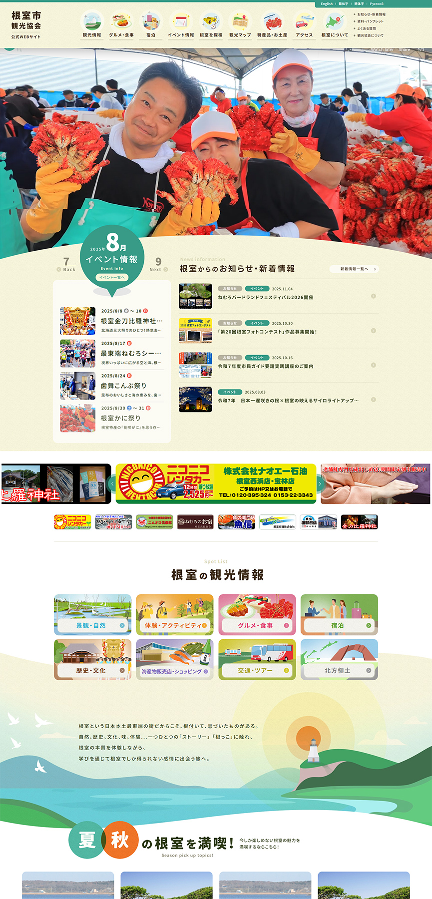 北海道根室市の「根室市観光協会様」のホームページをリニューアルしました。
