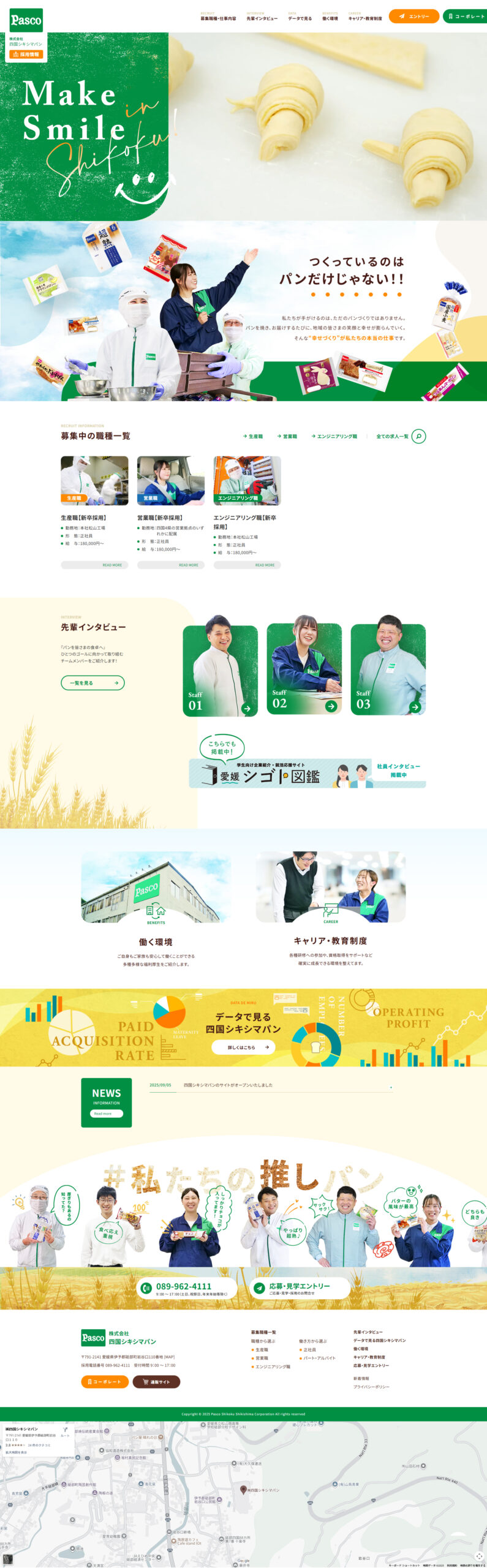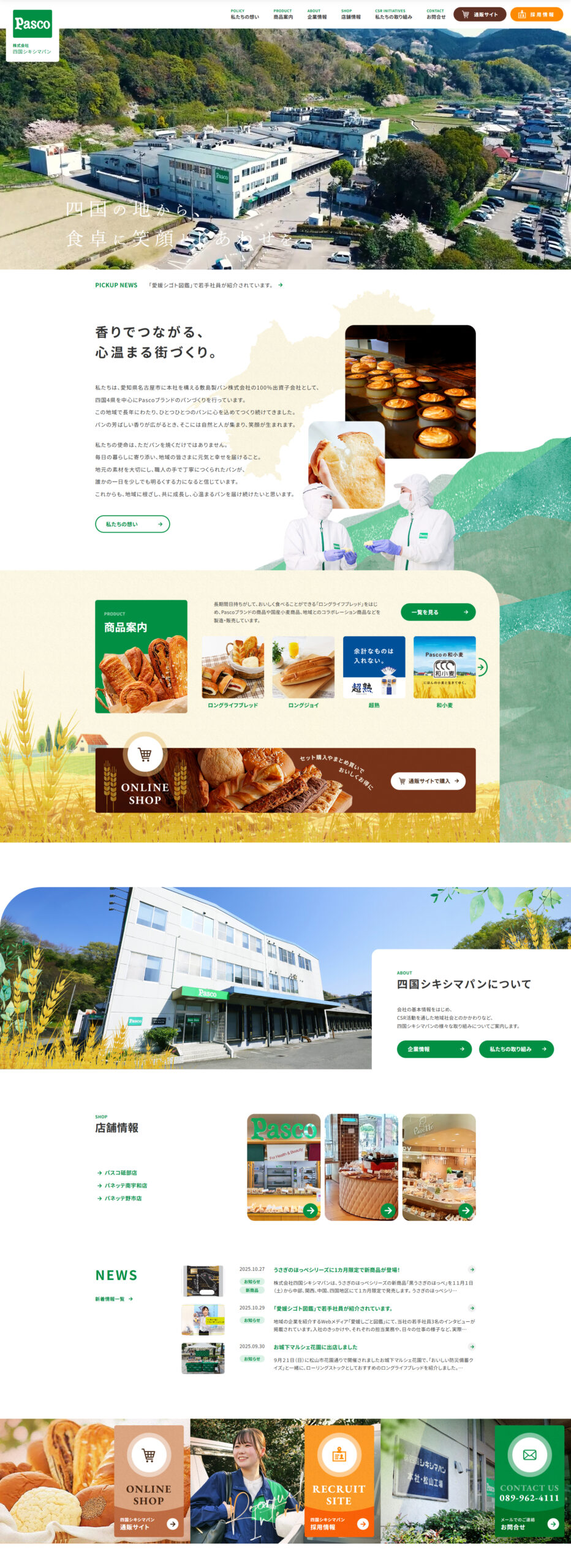 株式会社四国シキシマパン様のコーポレートサイトおよびリクルートサイトを制作させていただきました。